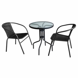 3tlg Bistrogarnitur Glastisch O60cm 2 Stapelstuhle Schwarz